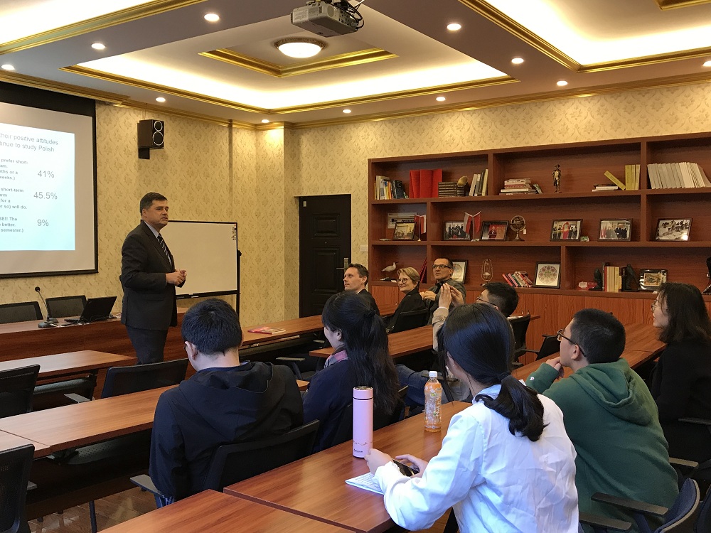 5、提供平台进行波兰语教学和波兰文化讲座。中心两位波兰籍老师已为全校师生开设波兰语和东欧文化等选修课程,并经常邀请国内外专家来中心介绍波兰文化。
