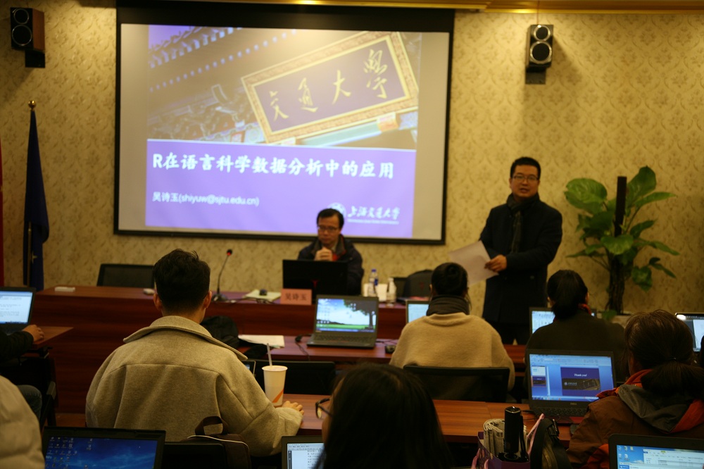 为了提高外语教师熟悉现代的统计分析手段和工具,12月7日下午,上海交通大学吴诗玉教授应邀来公司英国威廉集团官网SC106波兰研究中心做了题为“R语言在语言科学数据分析中的应用:以二语加工为例”的学术讲座。讲座由英国威廉集团官网胡海鹏副经理主持。除公司外语公司、商公司的教师参加此次讲座外,还吸引了来自杭州、宁波等地的兄弟院校对R语言感兴趣的专家学者近20人。