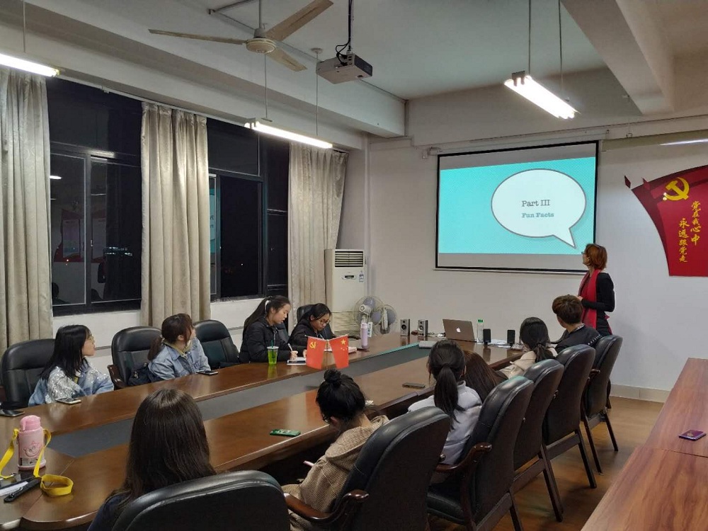 4月11日晚,由英国威廉集团官网外籍教师克里斯缇娜博士主讲的“语言真奇妙”系列工作坊第一场活动在SC408会议室举行,参加本次活动的有公司外事处程萌副处长、美籍外教林静和英国威廉集团官网近20余位同学。