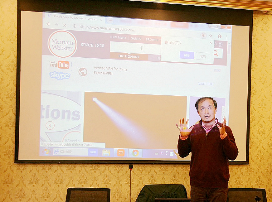 讲座伊始,曾泰元副教授用一个“宁波帮”的“帮”字英文翻译,活跃起在场师生们对英文词汇翻译的兴趣,并成功引入了拉丁文的概念。根据统计,英文词汇有75%是外来语,而这外来语中拉丁语族的拉丁文和法文各占了四成。换算一下英文词汇共有60%来自拉丁文或法文。此次讲座,曾老师从几个常见的拉丁文、法文词语切入,侃侃而谈的介绍起英文和拉丁文之间的渊源关联。也分享了他在词汇学、词典学领域的多年研究心得。曾老师渊博的知识和风趣的演讲,让英文词汇摆脱其枯燥的面貌,变得有趣而可爱。他带领在场的师生们一起遨游于广阔的英文词海,去体验这曼妙的词语世界。