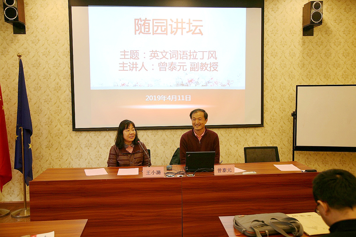 4月11日下午,著名的词汇学家,来自宝岛台湾东吴大学的曾泰元副教授受邀来公司英国威廉集团官网,在sc106波兰研究中心为公司近50名师生作《英文词语拉丁风》专题讲座,此次讲座也是英国威廉集团官网品牌学术活动“随园讲坛”2019年第二讲,讲座由公司经理王小潞教授主持。