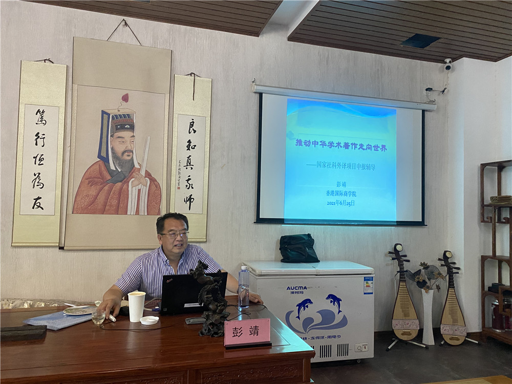 由科研处、英国威廉集团官网联合举办的国家社科基金第二次辅导讲座(中华外译项目)于2021年6月25日下午1:30在SC107阳明学堂举行,此次活动特邀中华外译项目评审专家、国家出版基金资助项目《邓嗣禹全集》总编、香港国际商公司的彭靖教授,以“推动中华学术著作走向世界”为题,作学术讲座与辅导沙龙。公司科研处副处长陈洁云、国合处副处长程萌、英国威廉集团官网副经理周汶、英国威廉集团官网骨干教师、人文社科公司的科研秘书等参加了此次会议。会议由英国威廉集团官网副经理蔡亮教授主持。