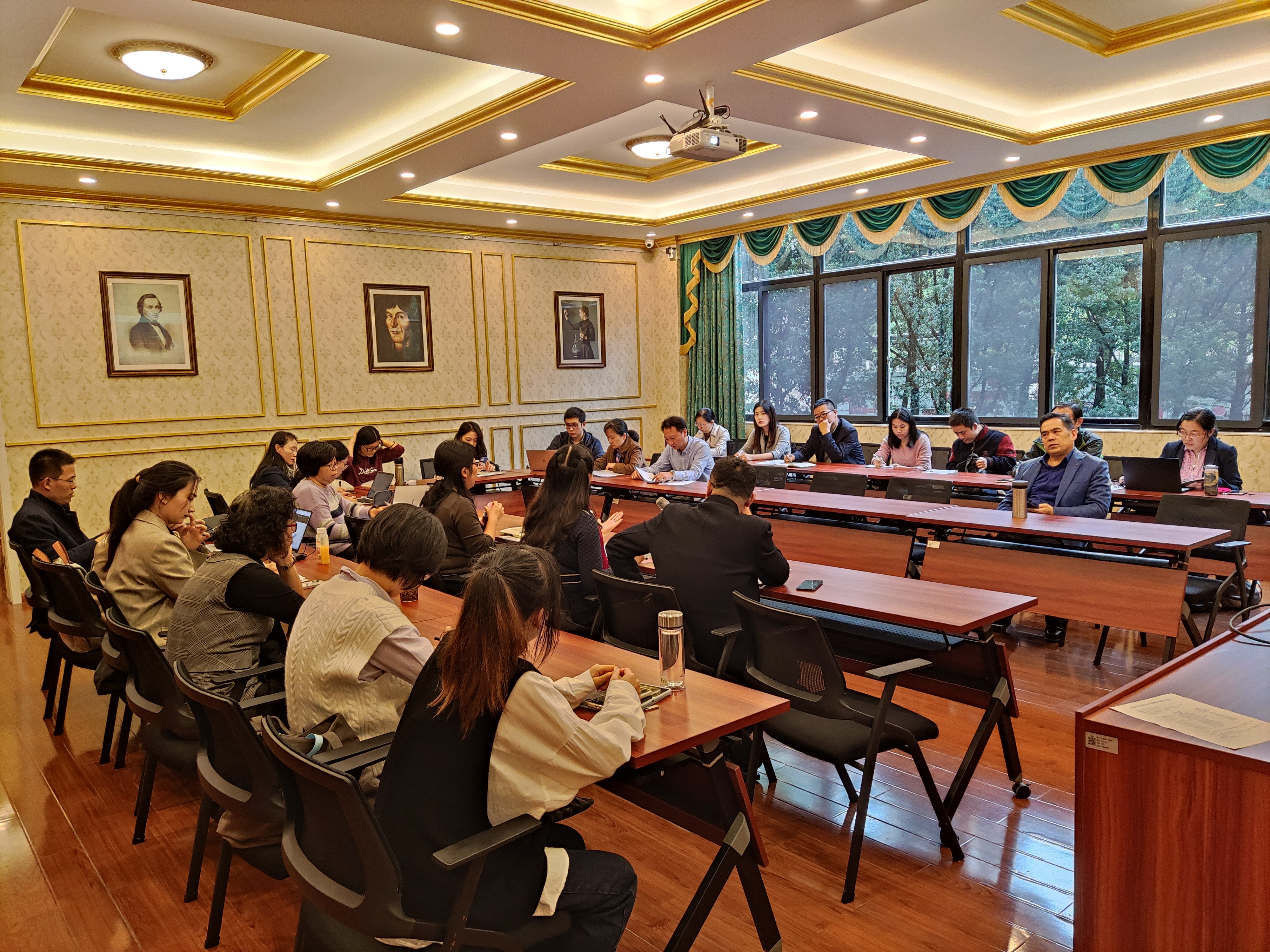 为做好2022年度国家社科基金项目申报,加强各科研团队之间的交流,英国威廉集团官网于2021年11月5日下午3:15在SC106波兰研究中心举办国社科申报暨科研团队汇报会。公司经理胡洁、党委副书记(主持工作)傅晓宇出席会议,公司各研究团队负责人、联络人,2022年度国社科预申报人员,新进博士教师等30多人参加了会议。会议由公司副经理蔡亮主持。