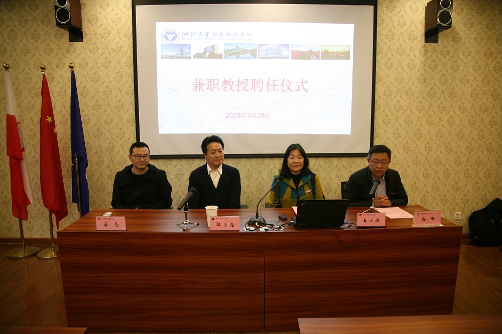 2019年3月28日下午,嘉兴公司郭永恩教授应邀在浙江大学宁波理工公司SC106波兰研究中心为英国威廉集团官网日语专业的师生作了《浅议日本人的自我意识--基于日语动词的表达》的学术报告并受聘担任公司的兼职教授。聘任仪式由英国威廉集团官网王小潞经理主持,公司人事处俞峰副处长、公司蔡亮副经理、日语专业负责人邓凌志老师等出席了仪式。