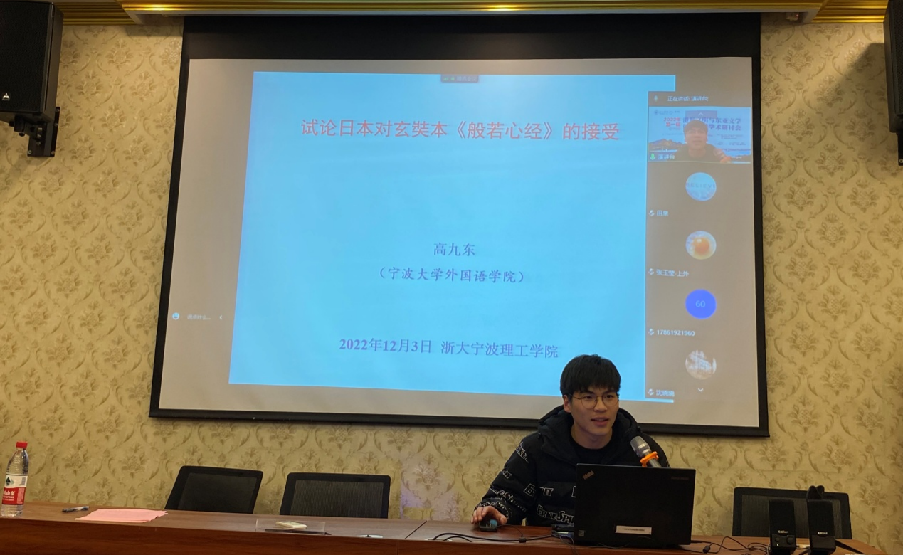 宁波大学研究生高九东同学以“试论日本对玄奘本《般若心经》的接受”为题,从《般若心经》在日本的接受这一角度出发,探寻玄奘本《般若心经》在日本的接受群像,并通过日本对玄奘本《般若心经》的接受,梳理了《般若心经》在日本的受容。