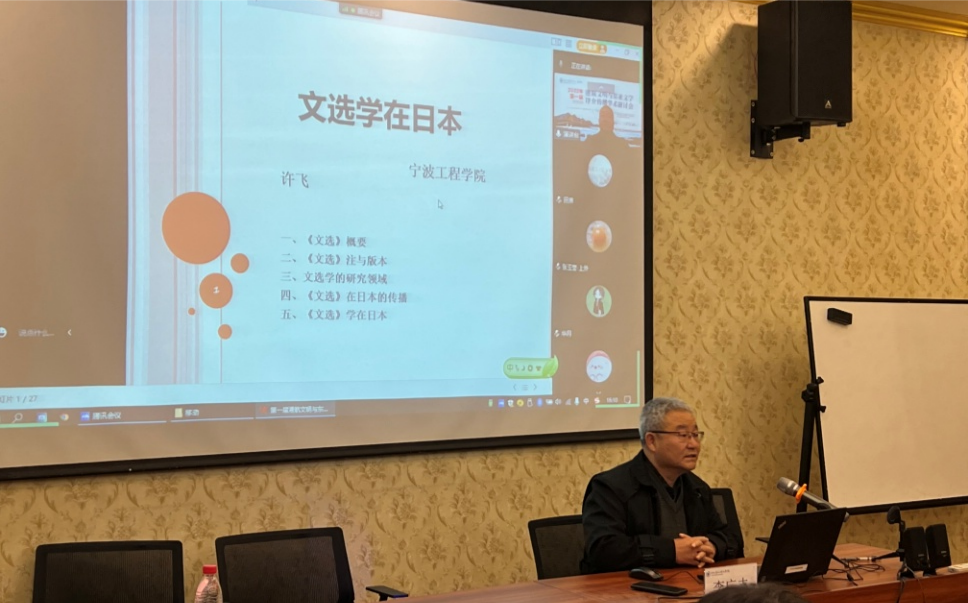 宁波工程公司学科带头人许飞副教授以“文选学在日本”为题,强调了《文选》在奈良时代传入日本后对日本文学的深远影响。日本的文选研究始于上世纪二十年代,京都大学铃本虎雄讲文选,弟子斯波六郎于广岛潜心研究,成为权威。广岛大学与东大、京大并为文选学的三大“重镇”。上世纪90年代,文选学进入大收获期,同时兴起“新文选学”。