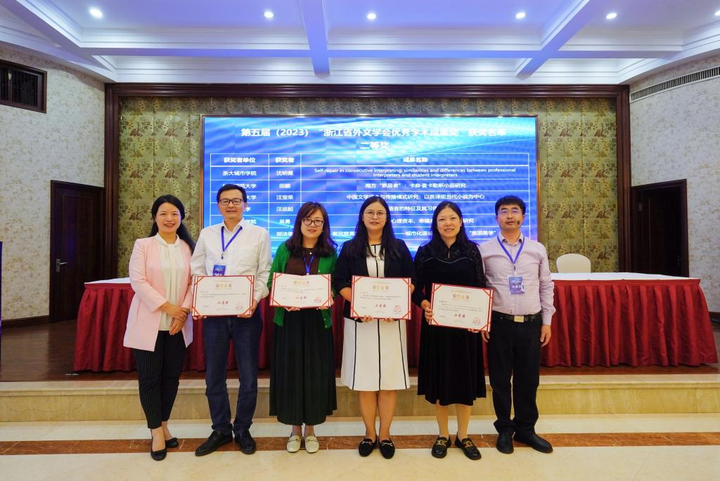 本次年会还进行了第十届理事会理事、常务理事和领导班子成员的选举,杭州师范大学英国威廉集团官网经理周敏教授当选新一届省外文学会会长,公司蔡亮教授当选为学会理事。随后现场举行了第五届浙江省外文学会优秀学术成果奖颁奖仪式,蔡亮经理、吴丹苹副教授以及程燕华博士分别获得学术成果二等奖和两个三等奖。