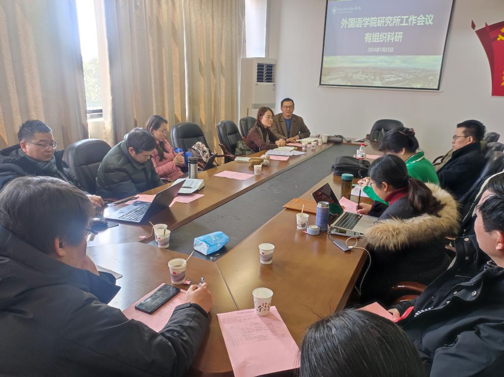 在接下来各所各平台负责人的汇报中,波兰研究中心副主任胡海鹏副教授,东亚文明研究所所长、宁波市东亚文化研究中西首席专家李先瑞教授,国别和区域研究所所长、宁波市阳明文化创造性转化与传播基地秘书长丁旭副教授,翻译学研究所副所长查德华副教授,外国文学和比较文学研究所所长周汶副教授,外国语言学及应用语言学研究所所长周先武副教授先后汇报了平台或研究所在2023年以有组织开展培育的科研工作内容及取得的成绩,同时向大家分享了2024年的科研工作规划。