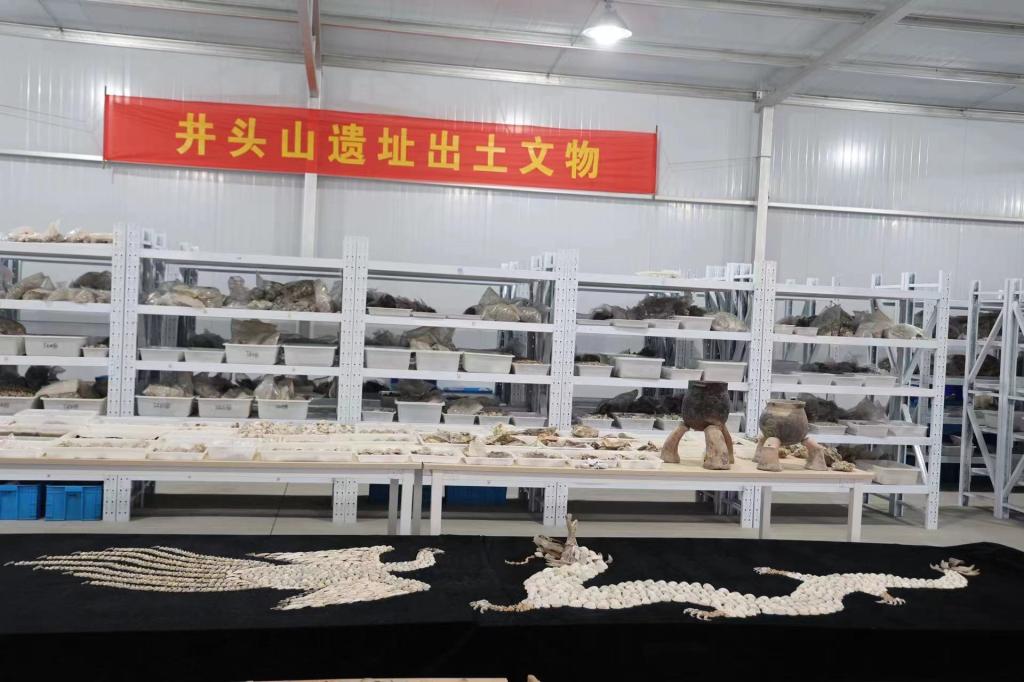 在交流时,恰逢余姚电视台为祝贺龙年新春,邀请孙老师拍摄贺年视频。他利用井头山遗址文物摆出了栩栩如生的龙凤图案以贺龙年新春。此幅“龙凤呈祥”由贝壳、鳄鱼骨、鹿角、蛏子壳、螃蟹钳子和黄鱼耳石等拼接而成,灵动的身姿拂去了历史的沉重,它们沉浮了八千年,如今以“龙凤”之姿重现于世人眼中,链接着过去、现在和未来。