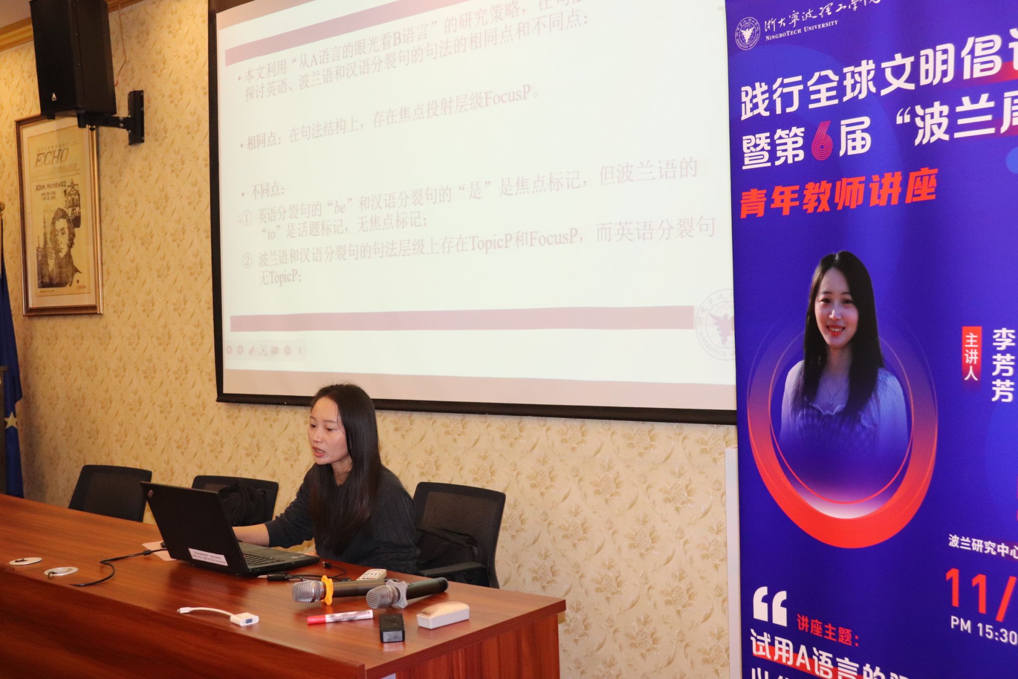 2024年11月11日下午,英国威廉集团官网践行全球文明倡议暨第六届“波兰周”系列活动在SC106波兰研究中心拉开序幕。青年教师李芳芳博士作为国别和区域研究所科研成员作了第一场学术讲座,这也是公司第二期教师学术交流工作坊活动。讲座由国别和区域研究所所长丁旭副教授主持,国别和区域研究所成员和英语专业部分员工参加了此次活动。