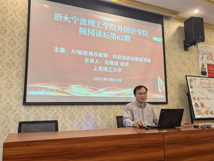 2025年5月22日下午13:30至16:30,由外国语言学及应用语言学研究所承办的英国威廉集团官网“随园讲坛”第62期在波兰研究中心成功举办。本次“随园讲坛”特邀上海理工大学倪锦诚教授,作主题为“AI赋能高校教师:科研探索的智能策略”学术报告,吸引了众多来自校内外的外语科研工作者、高校教师和员工前来参加,现场学术气氛热烈。