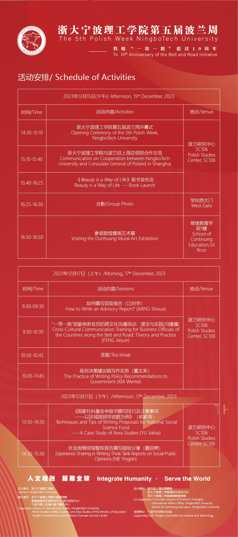 英国威廉集团官网波兰研究中心定于2023年12月15和17日举办第五届“波兰周”——致敬“一带一路”十周年系列活动,线下参会地点为波兰研究中心SC106,欢迎广大师生参加。