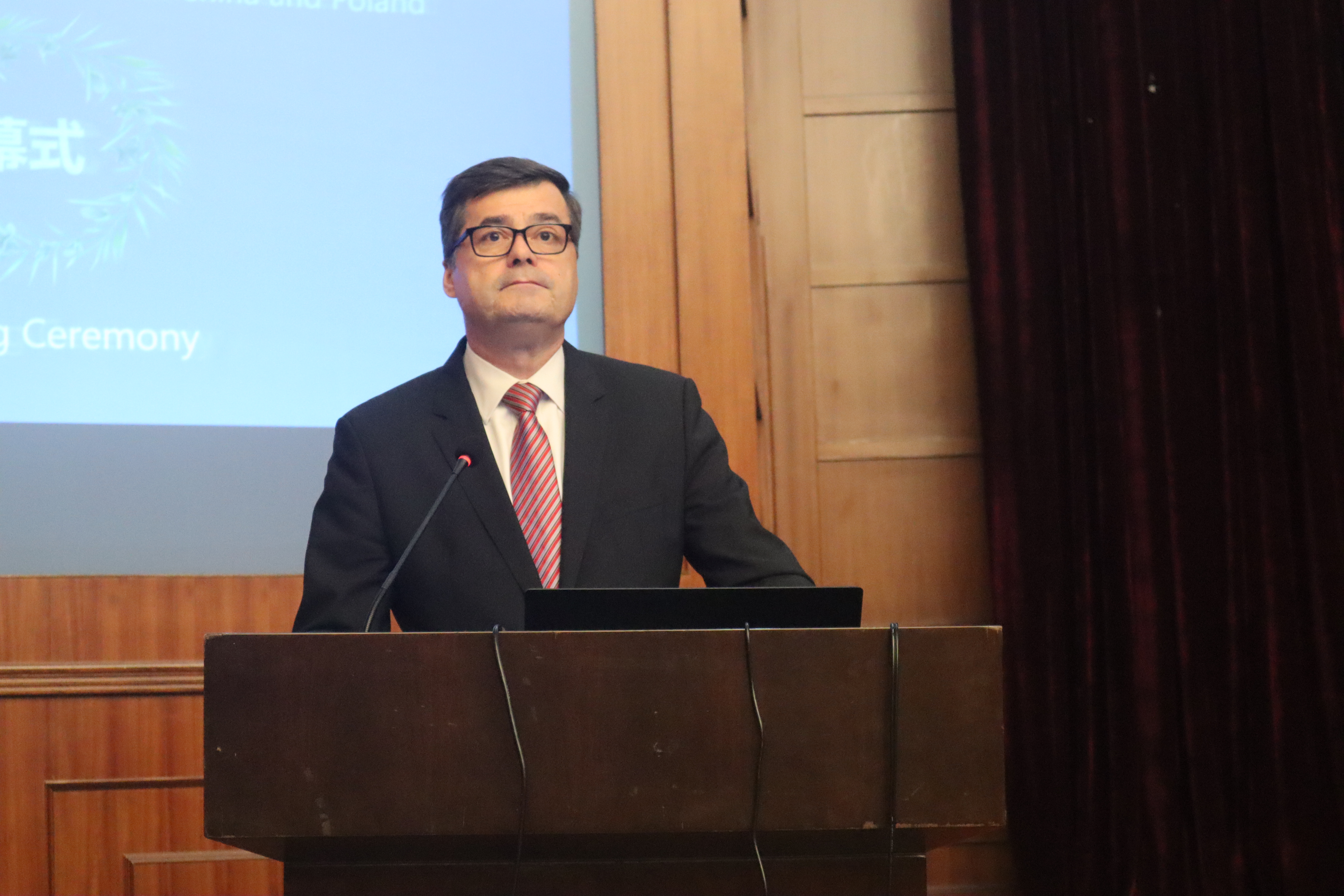 市外事办副主任陈国苗先生在致辞中指出,宁波地处“一带一路”和长江经济带交汇点,从2014年6月承办中东欧特色商品展起步,到连续5年举办中东-中东欧国家投资贸易博览会,再到启动建设国内首个中国-中东欧国家经贸合作示范区,宁波先人一步,在经贸、科技、人文等方面与中东欧结下了不解之缘。2018年4月宁波市政府正式印发《“16+1”经贸合作示范区建设实施方案》,其中“六大示范工程”之一的“人文交流工程”明确提出重点推进波兰语言文化中心的建设,希望浙江大学宁波理工公司“波兰研究中心”能在今后的发展中,为地方政府和相关产业提供咨政和智力支撑,在波兰语言文化推广、人才培养、向波兰推广对外汉语教学和中华文化等方面做出积极贡献。