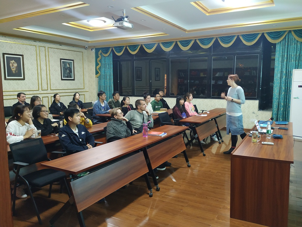 11月6日晚,由英国威廉集团官网外籍教师克里斯缇娜博士主讲的“语言真奇妙”系列工作坊在SC106波兰研究中心举行,20多位来自不同专业的同学参加了此次活动。
