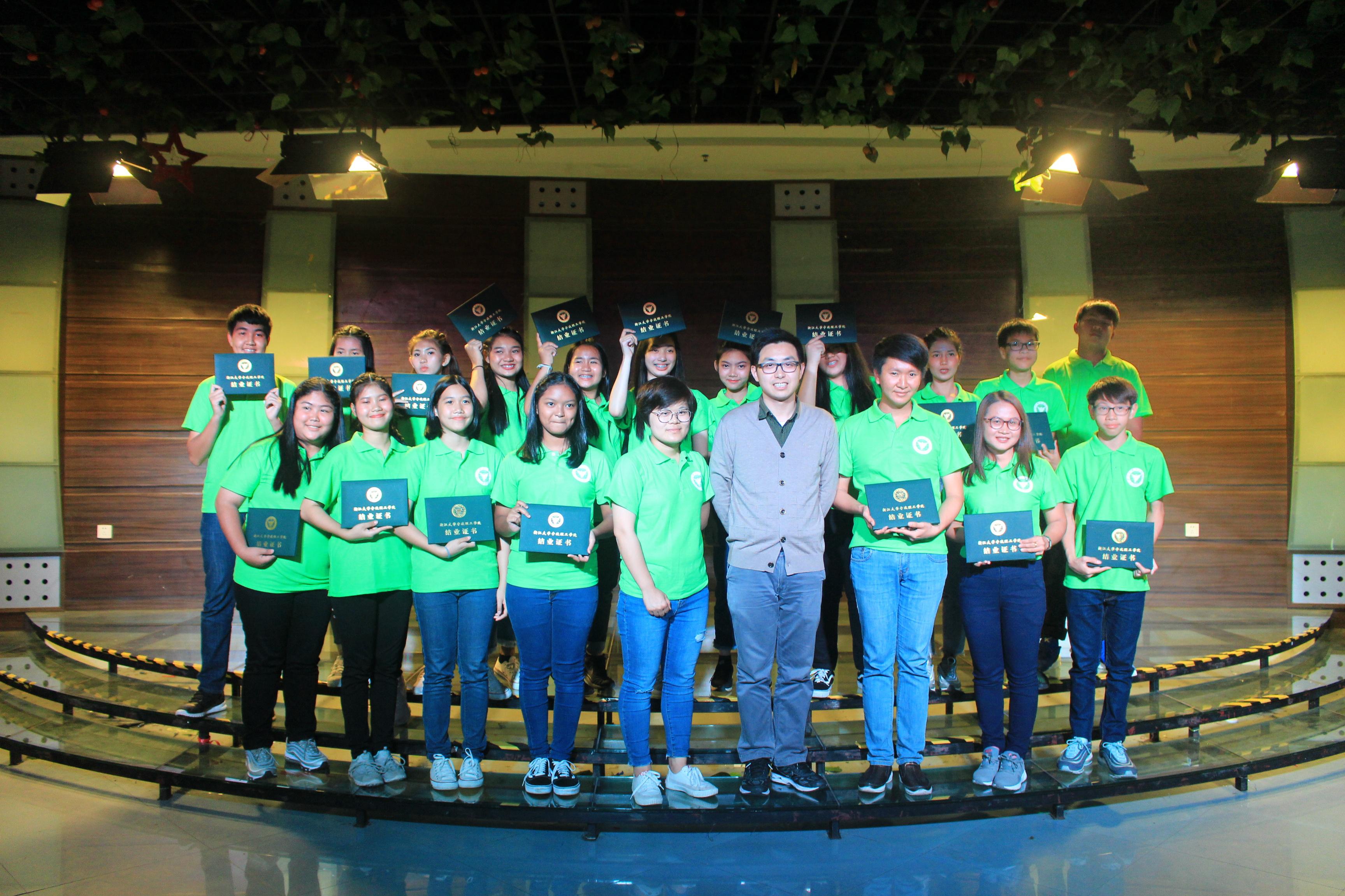 快乐的时光总是短暂的,26日晚上在老员工活动中心,举办了活动的结业仪式加欢送晚会。晚会上志愿者和泰国同学们一起表演了很多精彩的节目,由廖佳栋老师为同学们颁发结业证书。最后的还有一个小小的惊喜,阳明乐咖啡的小姐姐特地为泰国的同学们准备了小礼品。至此,本次的“一带一路”中泰传统文化交流活动---公益汉语课堂圆满结束。