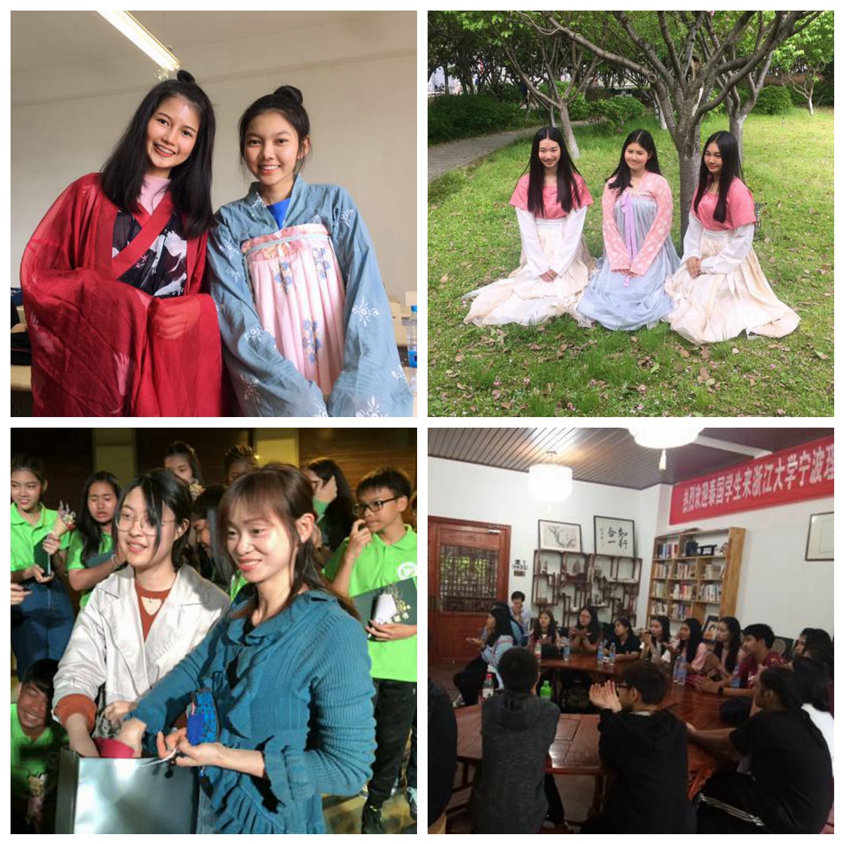 公司老师和志愿者们在接下来的两周时间内根据泰方员工们的时间分别为他们精心设计了中国文化汉语教学课堂以及丰富的活动包括捏泥人,中国书法教学,参观博物馆,剪纸,刺绣,汉服文化体验以及公司特色的阳明乐咖啡,手语教学课堂等等,其中捏泥人和剪纸老师是来自鄞州非遗馆的曲老师(泥人)和许老师(彩绣)。尤其要提一句的是由公司的子衿汉服社带来的汉服体验课程,小姐姐们为同学们细心讲解了汉服文化以及让同学们试穿了汉服。