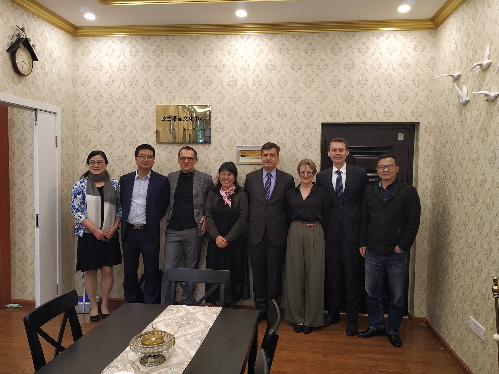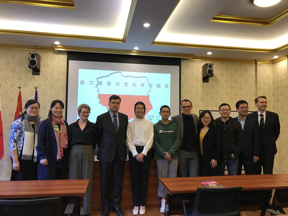 公司外国语公司党委副书记傅晓宇,副经理蔡亮,波兰研究中心副主任胡海鹏、陈黎峰,波兰籍教师马格达莱娜·根布特和阿图尔·雷加以及外语公司部分师生在波兰研究中心出席并参加了这次交流座谈会。