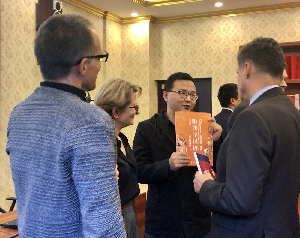 在座谈交流结束时,英国威廉集团官网副经理蔡亮赠送了一本“公益汉语课堂”教材和中心科研成果之一《波兰综观》一书,以表示我们将秉承“互惠互享”的可持续性文化交流和学术交流的理念。
