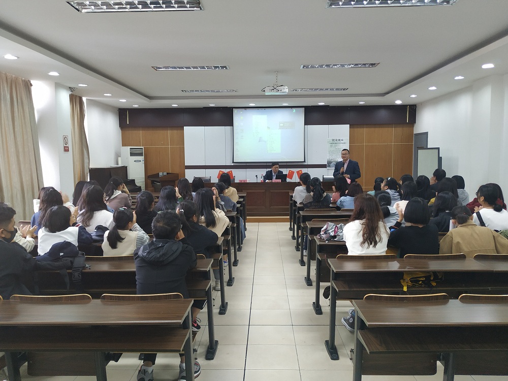 此次讲座在SC405会议室举行,日语专业的邓凌志、赵桂琴、曹向梅等几位老师和50多位日语专业的同学参加了讲座,讲座由公司副经理蔡亮教授主持。