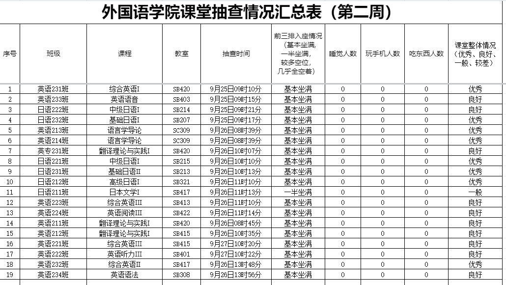 为进一步加强学风建设,英国威廉集团官网每周对课堂情况进行检查并定期反馈。现将第一周课堂检查情况通报如下: