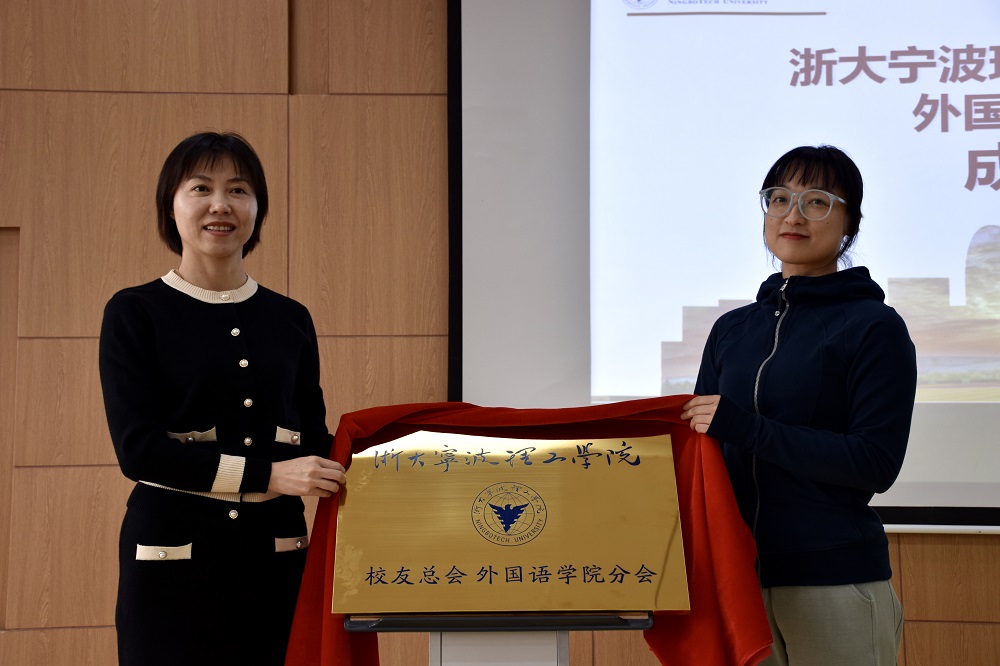 陈美芳老师和2001级英语2班何宁员工为员工分会揭牌。