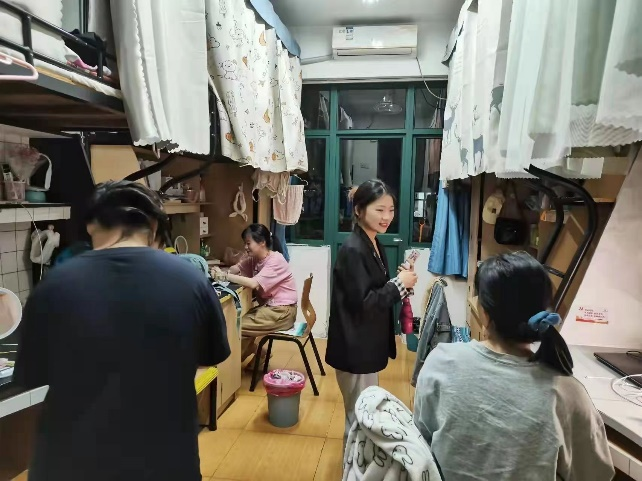 志愿者们还走访了部分员工公寓,对封校期间寝室的卫生、安全以及员工心理等方面进行了解,对电气火灾等事故的防范应对技能、非机动车校园通行、停放、充电管理,寝室安全给同学们作重点提醒宣讲,希望同学们共同努力营造一个良好的寝室生活环境。
