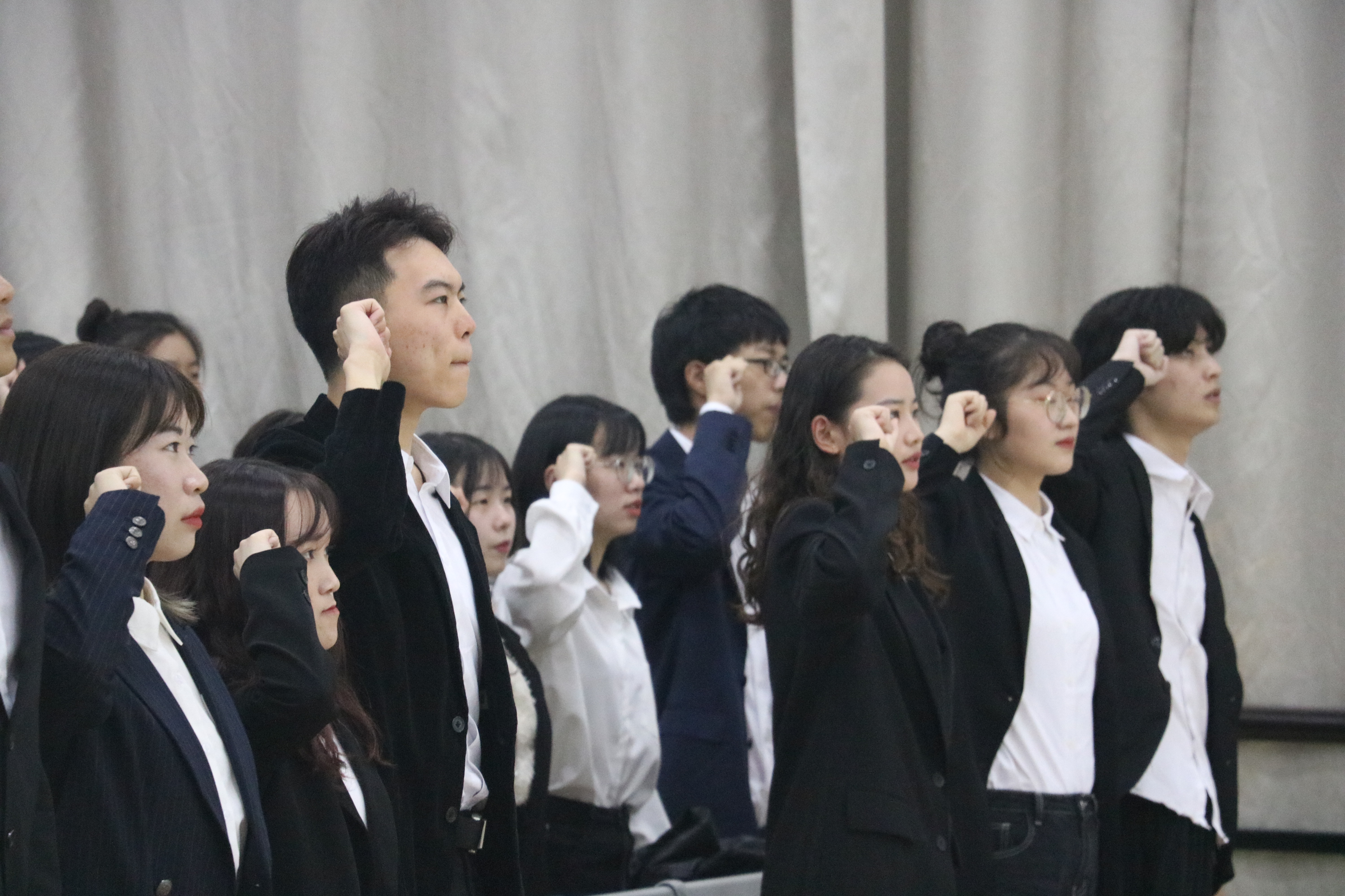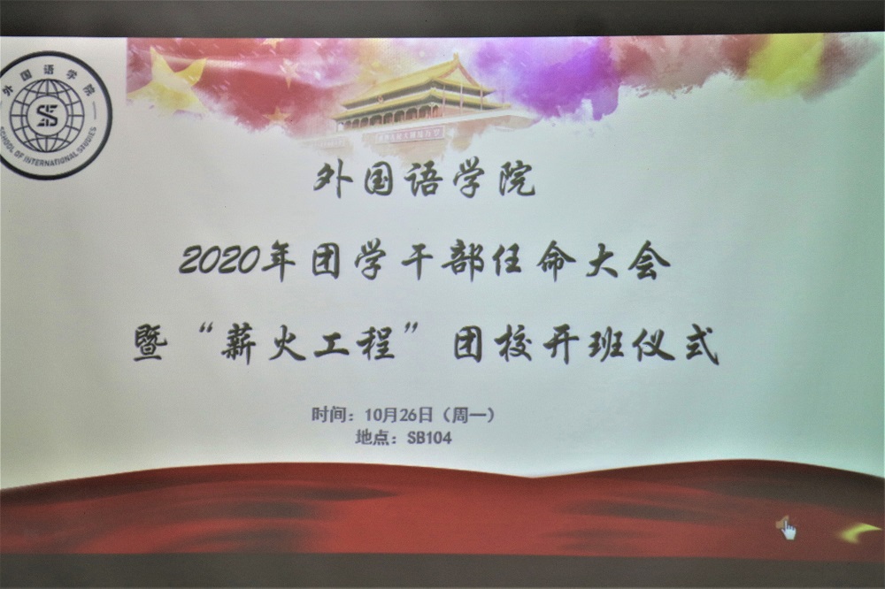 10月26日晚6:30,“英国威廉集团官网团学干部任命大会暨薪火工程团校开班仪式”在SB104教室顺利召开。外国语公司党委副书记任凯老师、辅导员董海云老师、英国威廉集团官网全体团学员工干部以及各班班委参加了本次活动。仪式由陈奕帆同学主持。