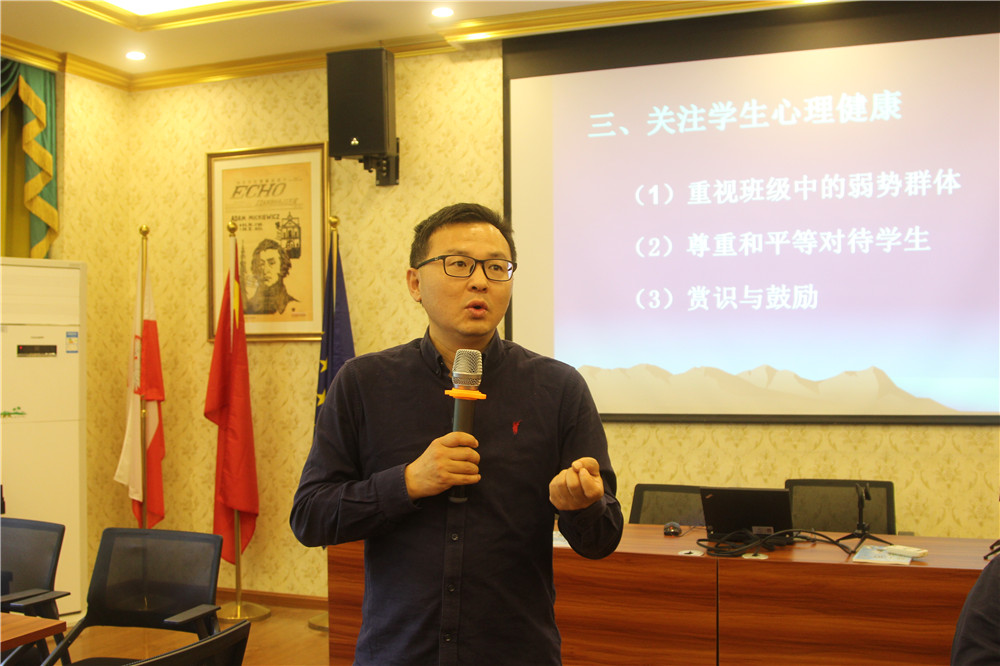 张峰老师分享了自己与心理困难生的故事,表达班导师需要养成强大的心理素质。