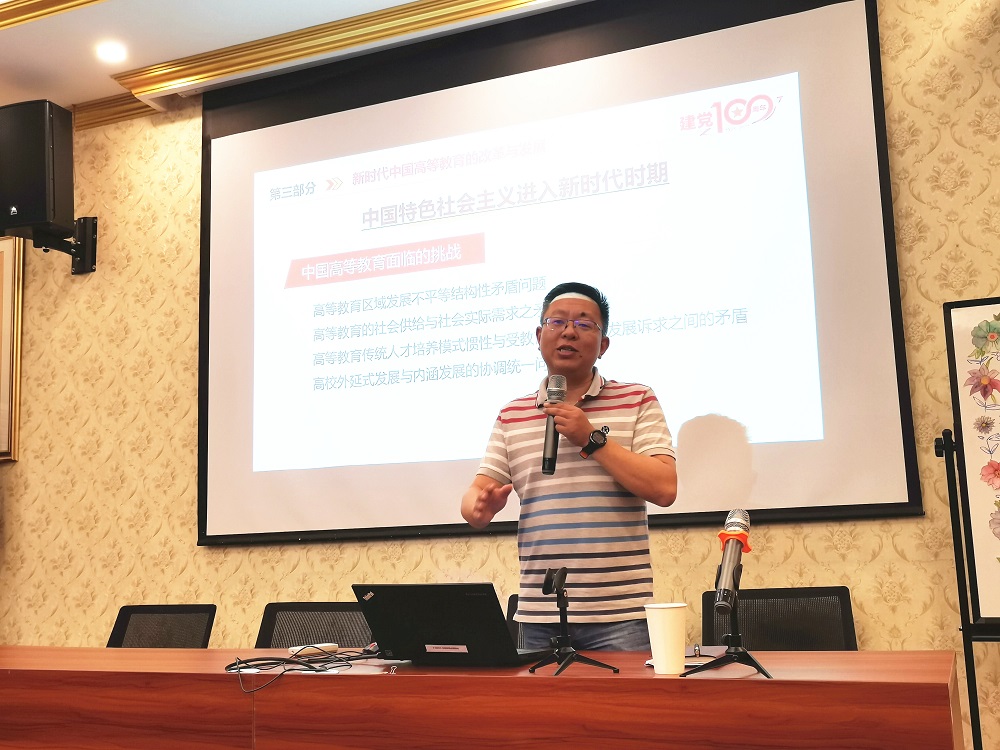 本次党课主题围绕中国共产党领导的高等教育展开。俞老师将本次主题分成三个模块,分别是中国共产党领导高等教育的历史轨迹、中国共产党领导的高等教育优势和新时代中国共产党领导的高等教育改革和发展。通过讲解,同学们对我国高等教育的发展历程有了一个立体的认识。最后俞老师还鼓励大家在学好自身专业知识的基础上,加强对个人核心竞争能力的培养,包括综合素质能力和团队合作能力。党课结束后,俞老师对员工党员的提问做了耐心、细心的解答。