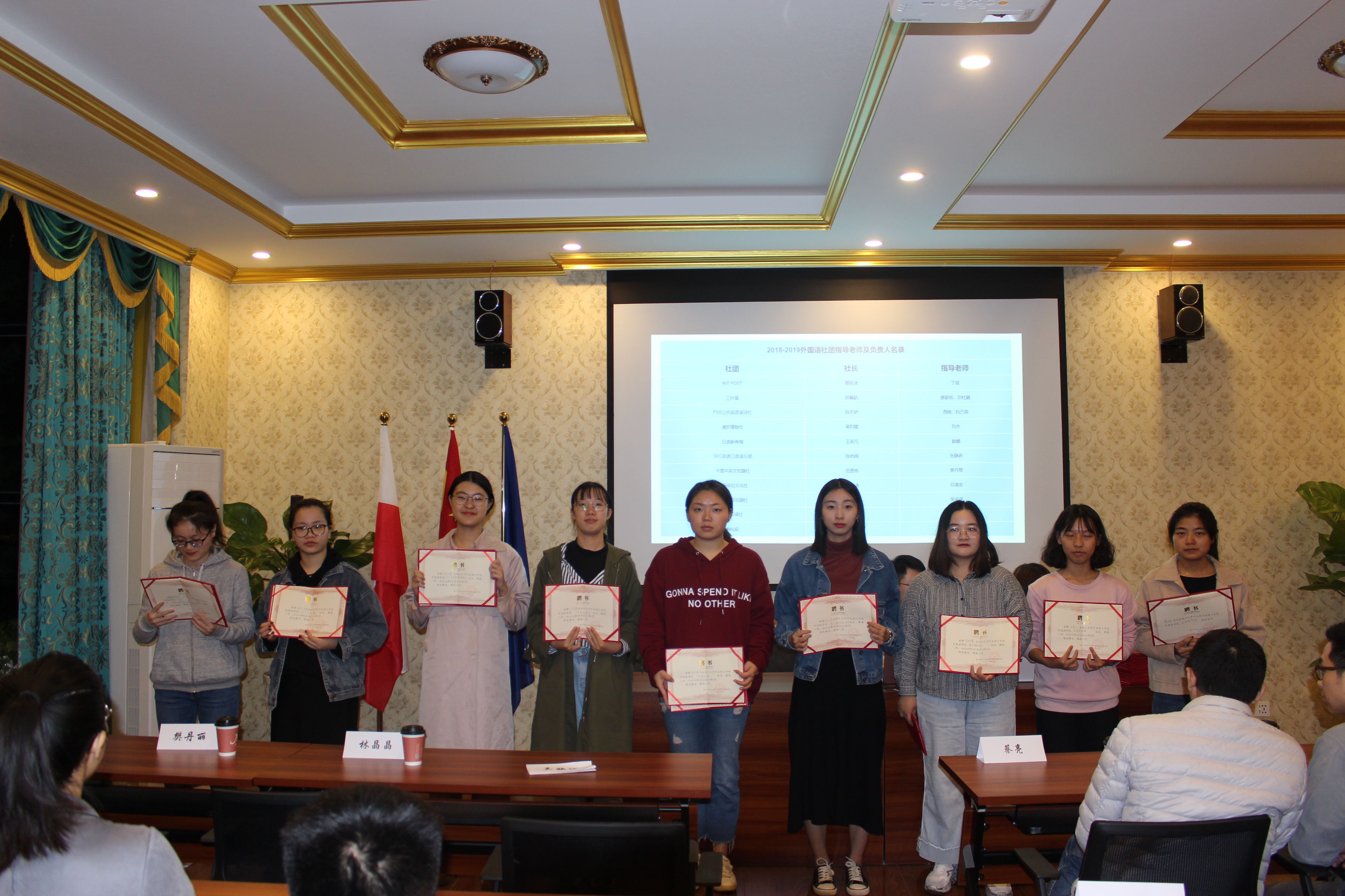 会议主要分为五个部分:社团纳新及成员总量分析、英国威廉集团官网蔡亮老师讲话及各社团指导老师负责人聘书颁发、校学联光合计划介绍及社团品质提升、新学期各社团初步规划一览、外国语学联社团主要联系人一览。