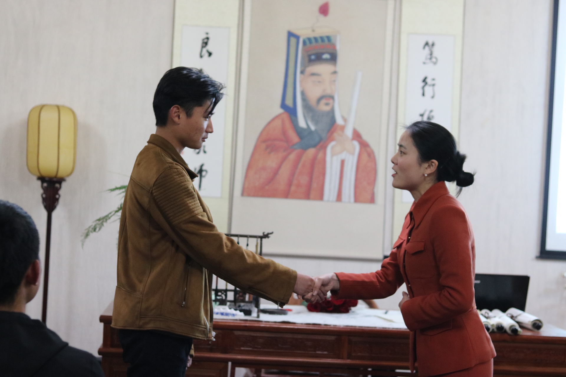 课堂上也开展了一些互动,如贴近同员工活的初次见面场景模拟,员工活动开展中的座位排列、嘉宾接待,人际交往中的握手、递交名片等模拟演练,实用又有趣。