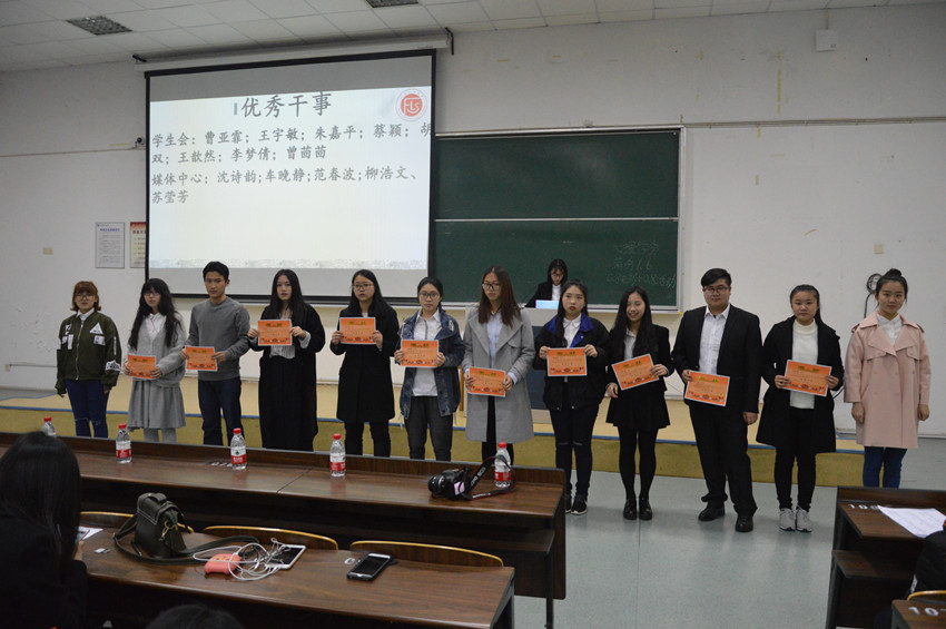 随后,大会对第一学期工作成绩突出的员工干部、干事进行了重点表彰,邀请公司团委书记刘杰老师、公司主席团成员为获奖同学颁发证书。最后,大会请刘杰老师进行总结发言。刘老师首先对全体团学同学上一个学期的工作成绩进行了肯定,认为团学人在引领同学“三自成长”、建设高品质的校园文化、推动文明修身工作开展方面作出了重要的努力,号召大家新学期继续以省委省政府关于老员工文明寝室建设的文件精神为指导,立足校园、围绕员工积极开展各项文明修身工作。接着刘杰老师从员工干部礼仪规范、团学组织管理沟通机制、员工工作战略思维训练、员工工作规范操作与执行等几个方面对员工干部进行了强化培训,要求大家新的学期在工作不断收获,不断成长。
