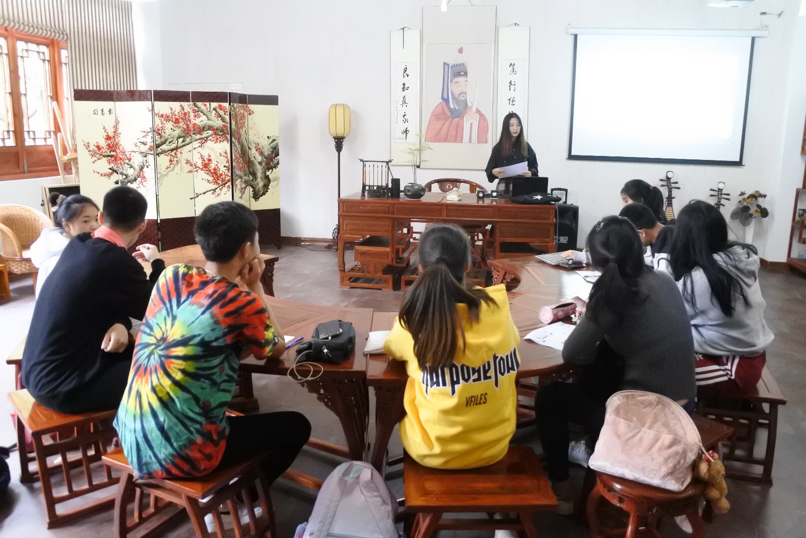老师同时还向他们介绍了宁波各类著名的景点如:宁波博物馆,鼓楼等,同学们还一起参观了我们的校园。然后,潘璐琦同学向他们介绍了中国的文化,如汉字的演变,中国传统服饰的演变以及交通工具和房屋建筑。