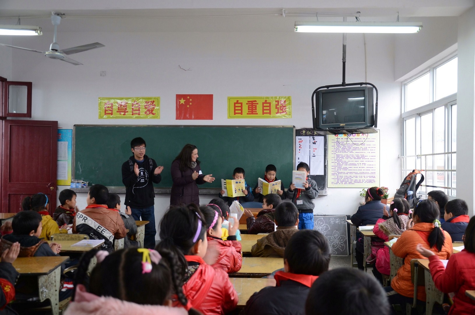 于是,在公益汉语课堂与浙江大学宁波理工公司英国威廉集团官网的组织下,3月2日下午,浙江大学宁波理工公司公益汉语课堂的外籍学员们与志愿者一起来到仇(qiu)毕小学,为这里的孩子们上了一堂纯正的英语课。