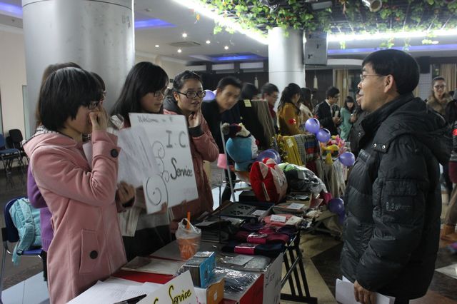 随着主持人开场介绍完毕,出口团成员依次介绍了他们公司并展示了其交易的产品,精美的PPT、流利的口语以及职业化的讲述一瞬间令外语学子国际化的“外贸范儿”呼之欲出。随后活动进入到现场交易阶段,在活动过程中,无论是参加比赛的进口团、出口团成员,还是来参加活动的老师和同学们纷纷用英语询问着商品的价格、质量,乃至更加严谨的价格磋商和商务谈判统统都以英语完成,使同学们的口语表达能力、商务洽谈能力都得到了实质性的锻炼。