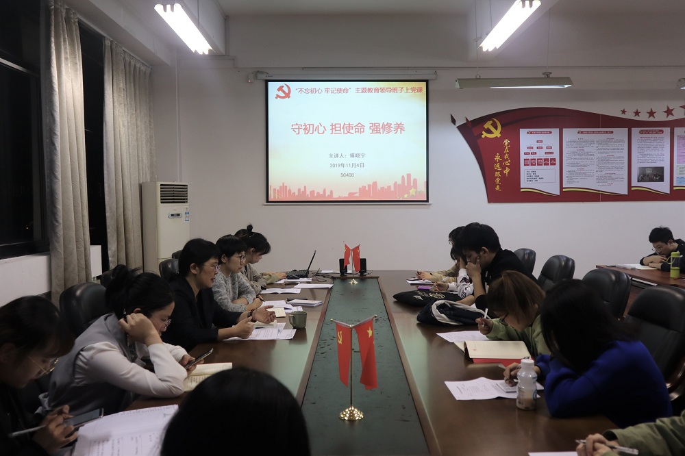 11月4日晚,外国语公司党委副书记傅晓宇以“守初心 担使命 强修养”为主题,在SC408党员之家为全体员工党员进行了党课讲授。员工第一、第二党支部书记芦美丽、刘杜娟参加了本次党课。