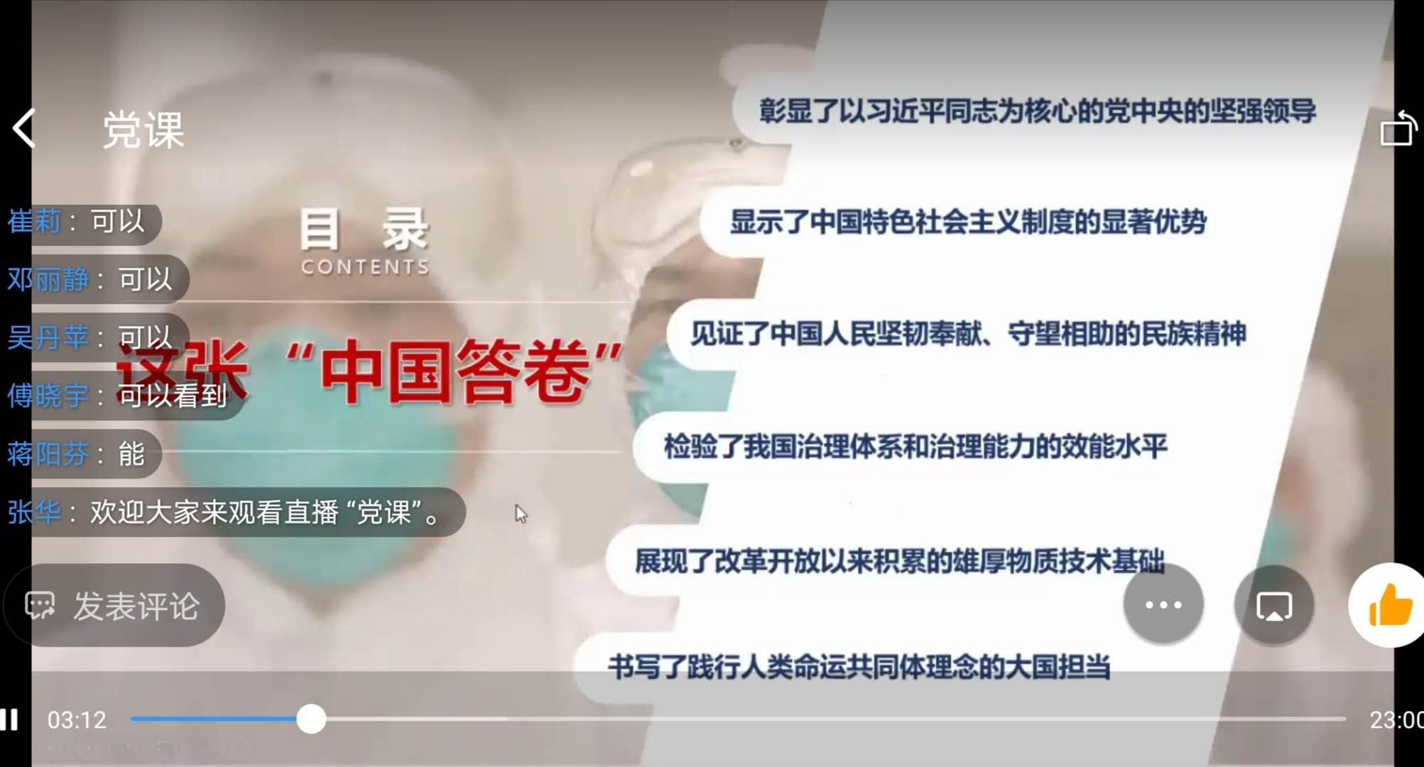 10月23日中午,英国威廉集团官网应用语言学研究所教工支部利用钉钉直播进行了集体党课学习。支部书记张华老师给大家上了一堂题为“读懂抗疫大考的中国答卷”的党课。