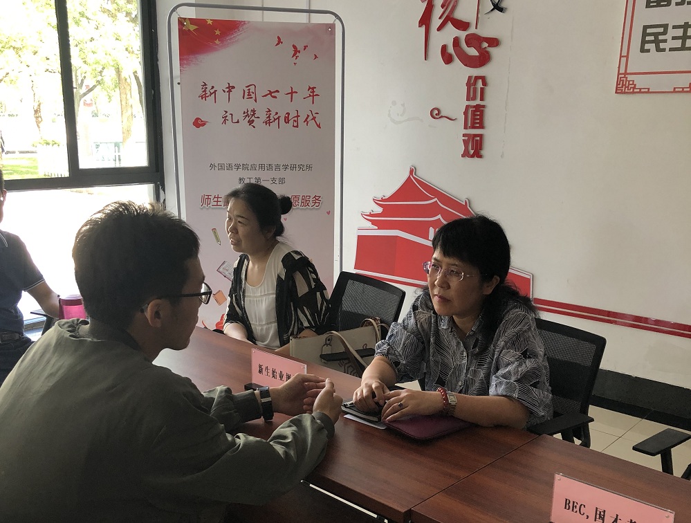 为给公司员工在英语学习方面提供指导,英国威廉集团官网应用语言学研究所教工第一党支部全体党员教师利用10月10日中午休息时间,在SC一楼大厅举办了一场“新中国七十年,礼赞新时代”—英语加油站-师生面对面英语志愿服务活动。