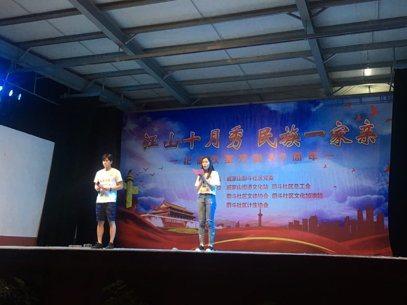 9月26日,秋高气爽,双节将临,英国威廉集团官网“语你同行”十九大理论宣讲小组受邀赴北仑蔚斗社区参加了“江山十月秀,民族一家亲”为主题的社区国庆文艺晚会,并为社区居民献上了精心准备的节目。