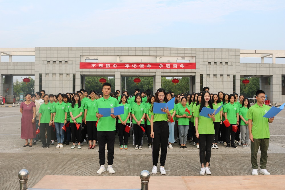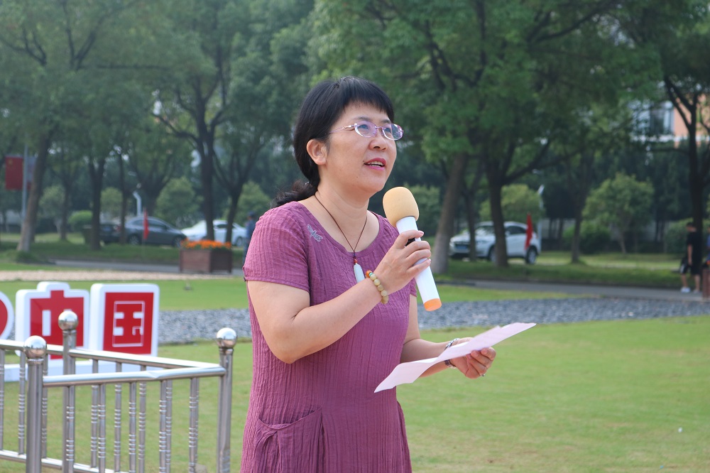 傅晓宇副书记在仪式上讲话,她提到建国70周年的历史是一部感天动地的历史史诗,是每一个中国人努力的结果。而作为外语人的同学们,更应该做一名具有国际视野的有志青年,具有人文情怀的有德青年,具有实践能力的有为青年,具有创新精神的有才青年,为祖国的发展和繁荣尽一份自己的力量。