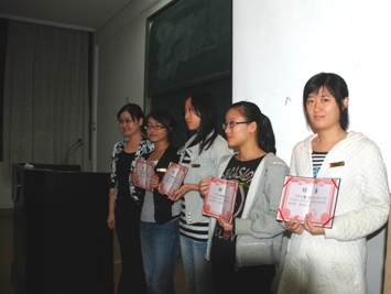 在十九期党校入党积极分子培训班外语分院教学班开班典礼上,分公司党总支书记谌晓煜向首批选聘的四位品学兼优的员工党建助理颁发了聘书。