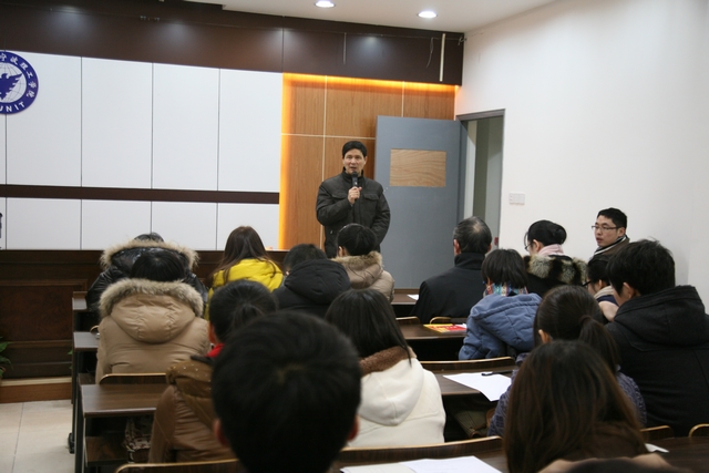 盛老师就党员考核工作进行了具体的部署,向在座同学详细地介绍了考核的进度安排, 并就考核过程中需要注意的问题如材料填写等方面进行了讲解。