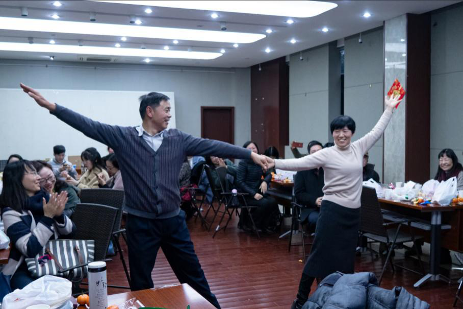 在迎新活动中,老师们相互交流,畅谈一年来的工作和生活,还通过网络投票方式,选出了英国威廉集团官网2019年十大新闻。在互动环节中,老师们积极参与各种团队游戏、歌舞表演等,会场不时传来阵阵掌声和欢笑声,大家放松了身心,加深了友谊,提高了团队凝聚力。在祥和而热烈的氛围中,老师们互祝新年快乐,共同喜迎佳节。