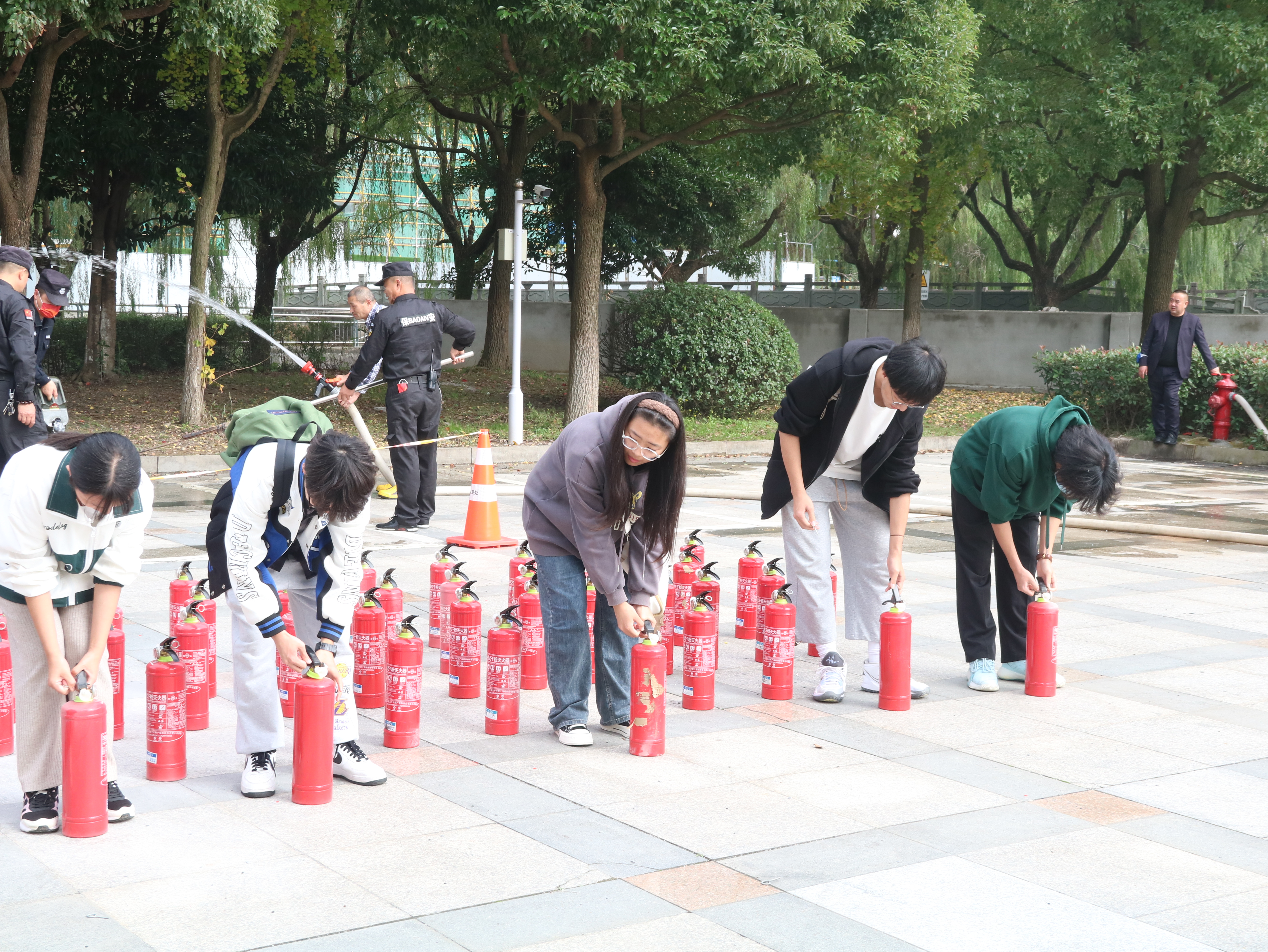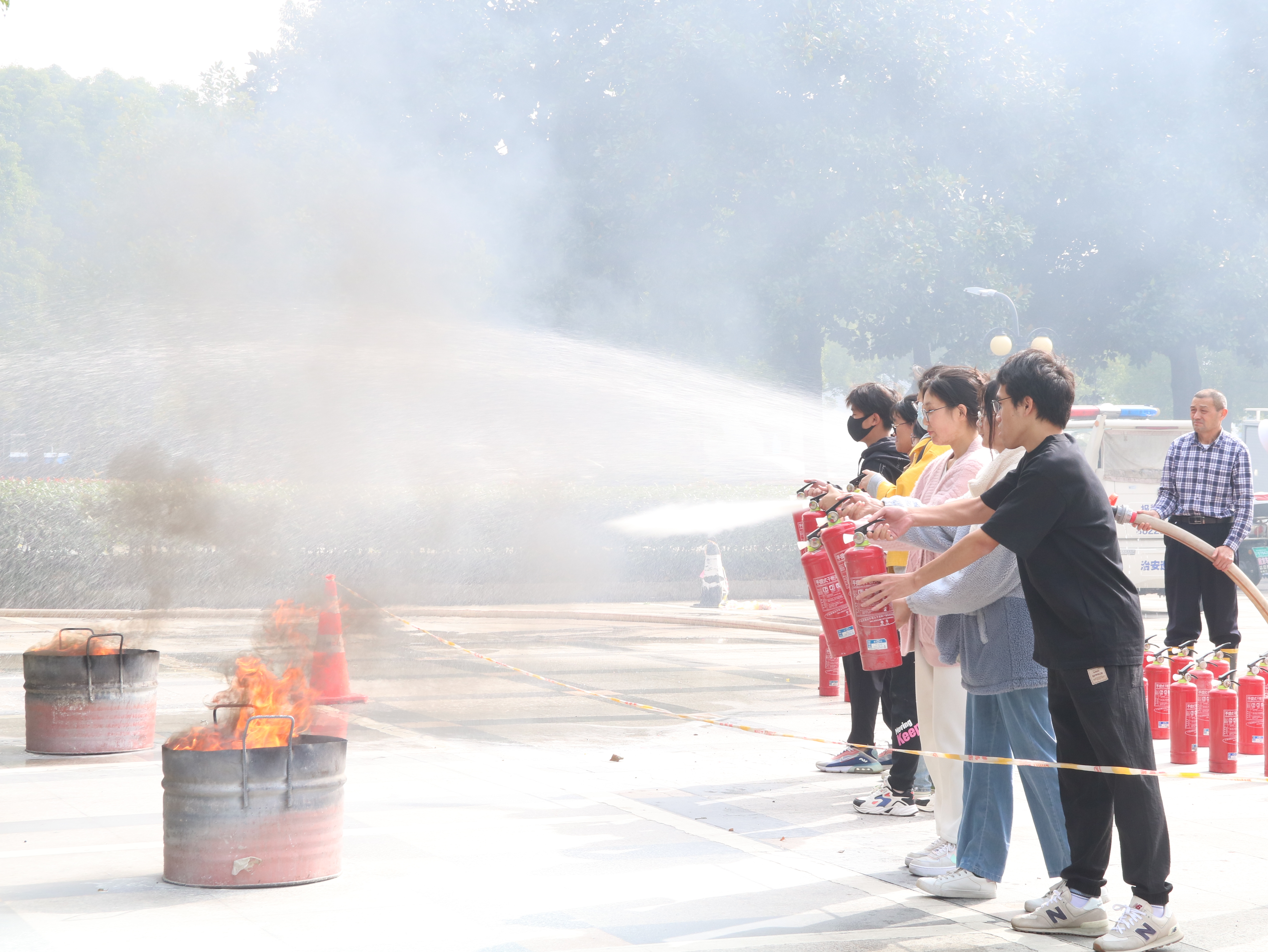 集团保卫处燕永波老师为现场师生讲解了灭火器的使用方法和注意事项,并进行了演练。之后现场师生实际操练了灭火器的使用。