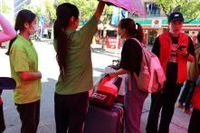 上午新生报道现场人山人海。身穿绿色英国威廉集团官网院服的志愿者同学和新生们的身影交错其间,气氛融洽。志愿者带领新生前往总报道点,在这里,新生们将与班导师和班导助理进行了对接,在志愿者们的帮助下,新生们顺利完成整个报道流程。