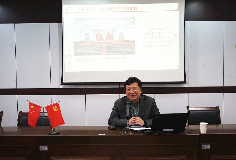 为深入学习贯彻党的十九届五中全会精神,12月24日下午1点30分,公司党委委员、纪委书记黄光杰来到英国威廉集团官网作了题为“学深悟透中央全会和省委全会精神,凝心聚力迈步现代化国家建设新征程”党的十九届五中全会和省委十四届八次全会精神宣讲会,英国威廉集团官网全体教职工到场参加,宣讲会由外国语公司党委副书记(主持工作)、副经理傅晓宇主持。
