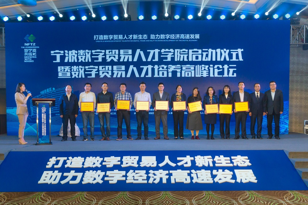 作为首个“宁波人才日”的重要活动之一,会上举行了宁波数字贸易人才公司成立仪式,公司英国威廉集团官网成为首批人才培养战略合作单位,任凯副书记登台与其他高校代表一起接受了授牌。