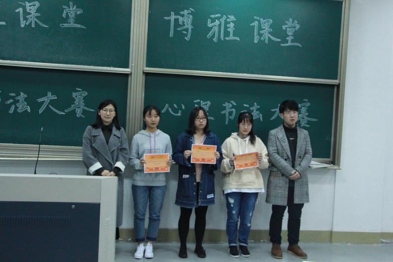 比赛中,每一为参赛选手都满怀激情,用心书写,很多作品笔画流畅、结构匀称、整体美观,在短短的两个小时内涌现了一批佳作。赛场左区是软笔书法组,只见同学们徐徐铺开笔墨,挥毫倾墨,行云流水,笔尖所至,楷书、行书、行草、甚至还有小篆,笔锋自来。右区花式英文组也不乏大神,选手们手握钢笔,轻松的勾勒出曼妙的花体英文,有一位同学甚至手绘了一幅如海报般的作品,让评委感叹选手“卧虎藏龙、不容小觑”。硬笔书法组就更是精彩纷呈,参赛人数是软笔加英文总和的近五倍,很多同学都胸有成竹,洋洋洒洒自信地书写;也有同学虽然写的很慢,但是他们对待作品却异常认真,一笔一划,这种“精雕细琢、慢工出细活”的精神值得每一个同学学习。经过评选,法学173班武涛、英语类173班蒋宁馨、英语161班叶权分获中文硬笔、中文软笔、花式英文一等奖。