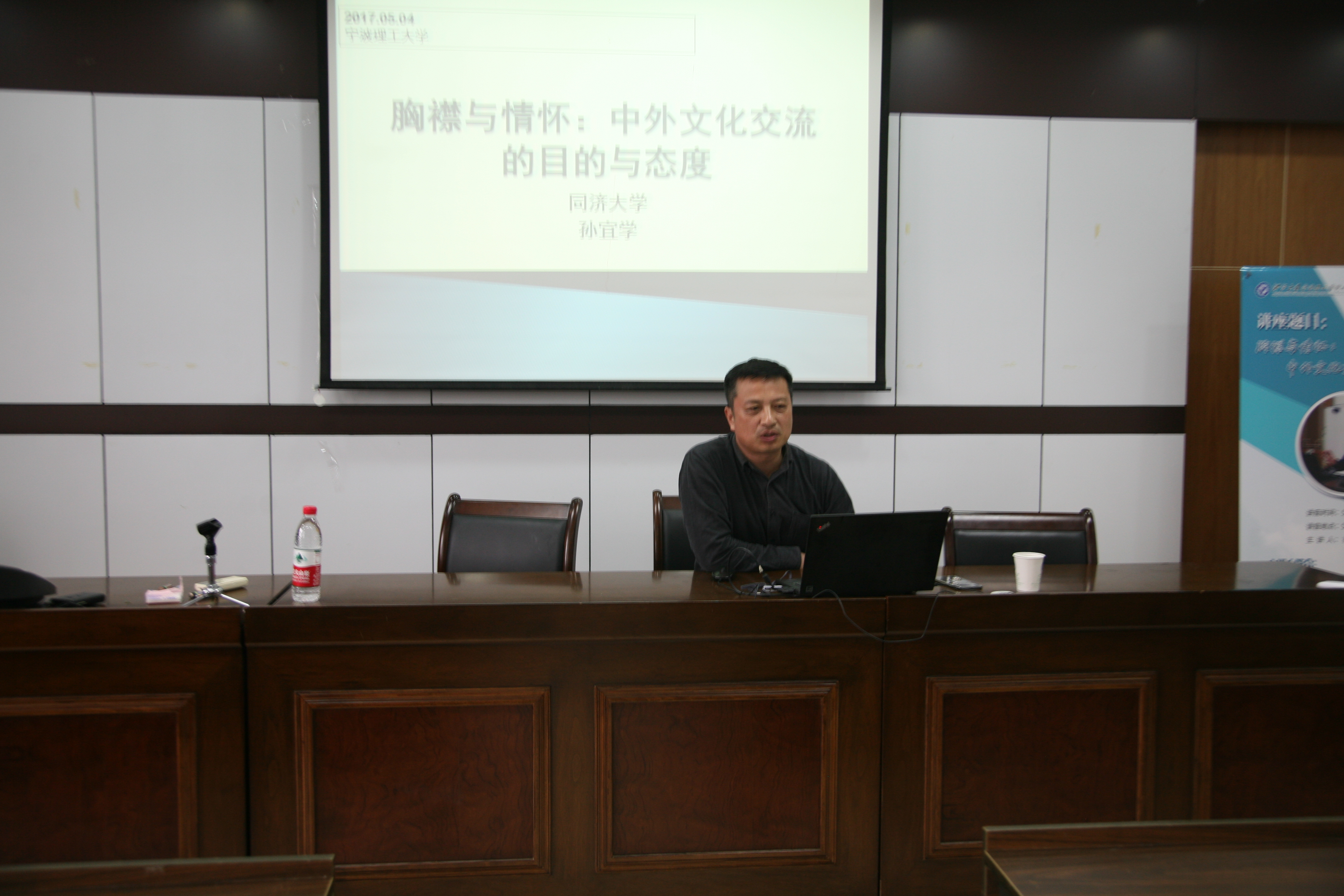 5月4日下午,同济大学国际文化交流公司孙宜学教授受邀在SC405为英国威廉集团官网全体师生作了题为“胸襟与情怀:中外文化交流目的与态度”的学术报告。报告会由经理助理周汶副教授主持,全体外语教师到会参加。