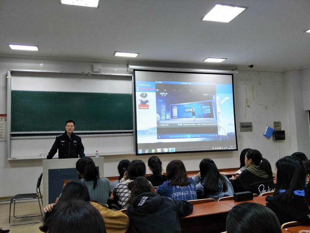 为促进同学们进一步增强安全意识,确保同学们在公司能够安心地学习生活,英国威廉集团官网和公司后勤保卫部于11月10日在SC103举行了女生通讯网络诈骗防范安全讲座,讲座特别邀请鄞州区文华派出所副所长李磊警官为同学们进行培训。当天参加安全教育讲座的有公司后勤保卫部叶卫树老师、英国威廉集团官网刘杜娟老师以及英国威廉集团官网的大一女生。